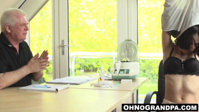 Petite Roxy sky teases old doctor for fat cock
